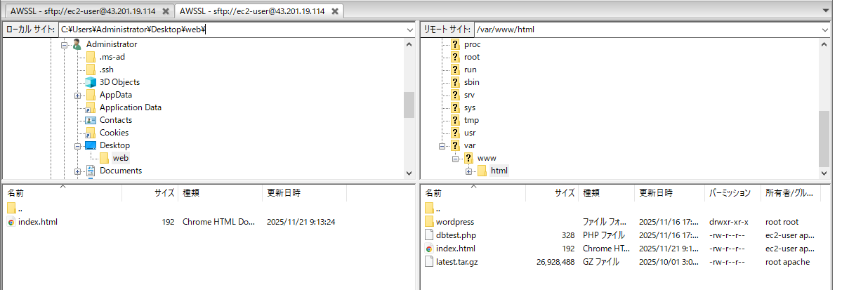 最近のレンタルサーバーやAWS Lightsail では、SFTP が基本です。