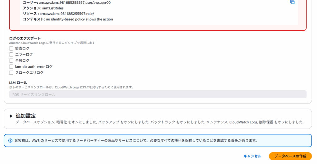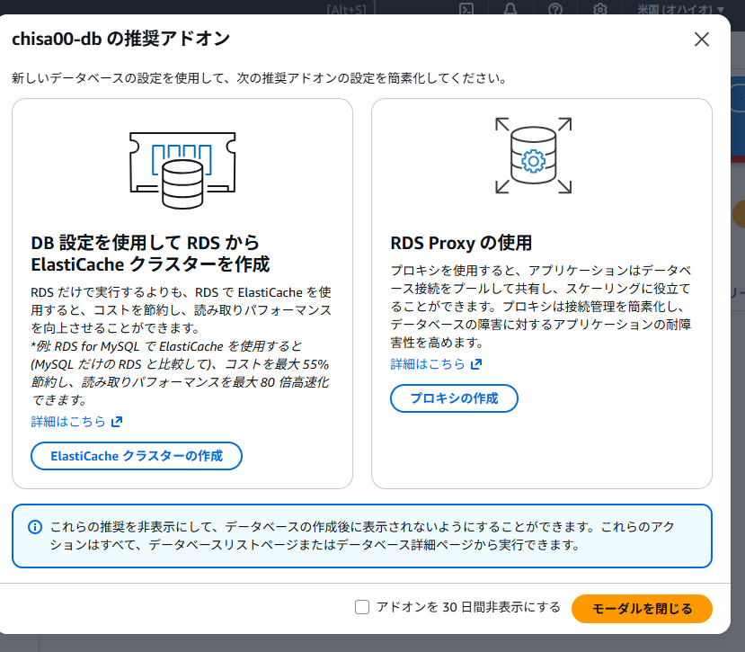 mydb.abc123xyz.ap-northeast-1.rds.amazonaws.com - ユーザー名: