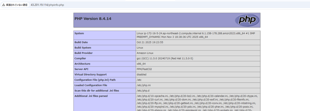 | 「Connection refused」 | Apacheサービスが起動していない(sudo systemctl start httpd) |