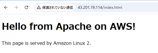 例:http://13.115.240.125/ - ブラウザでアクセス